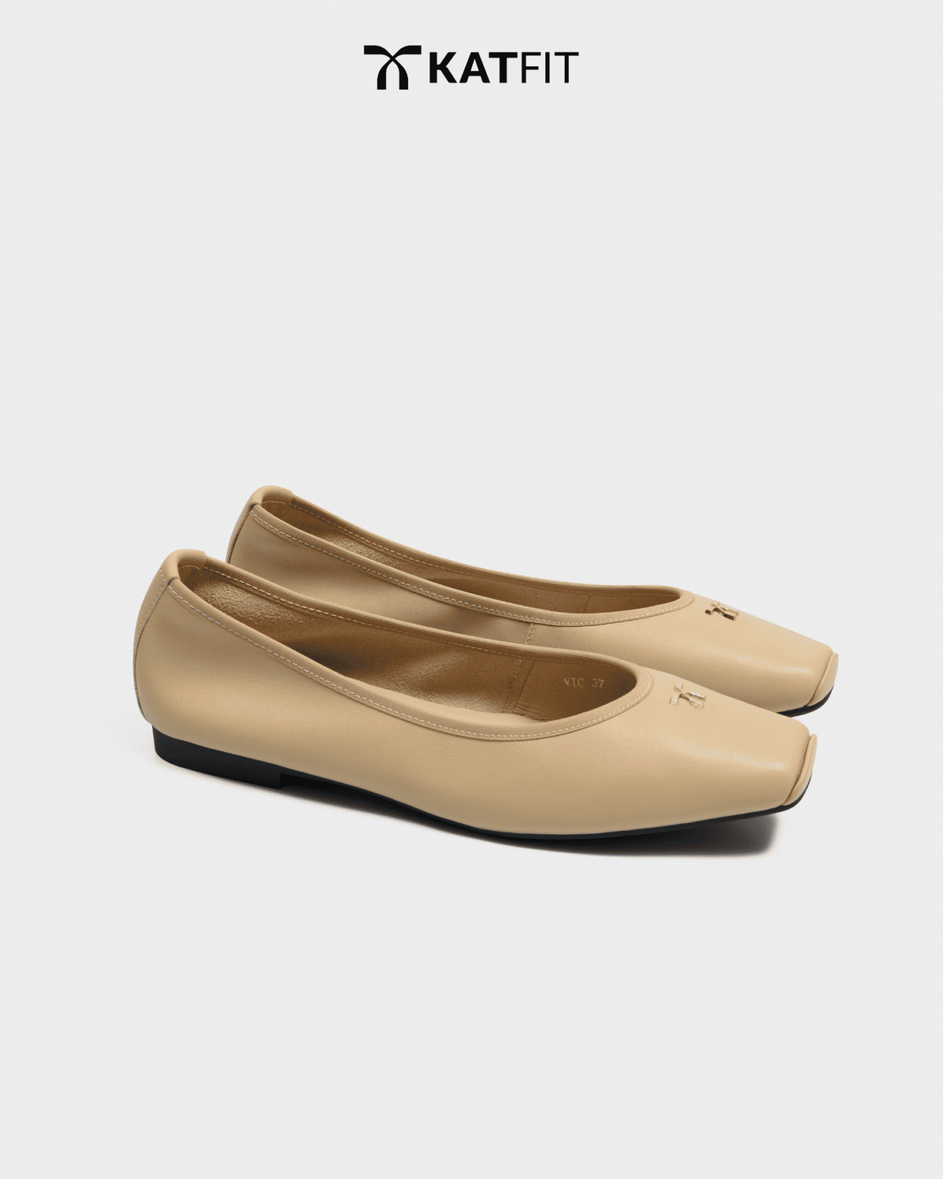 Giày đế bệt màu be Vic da thật