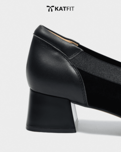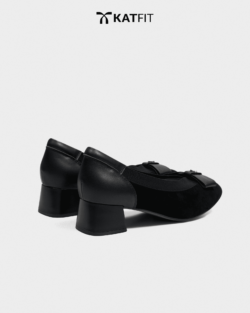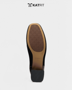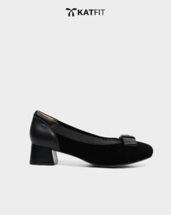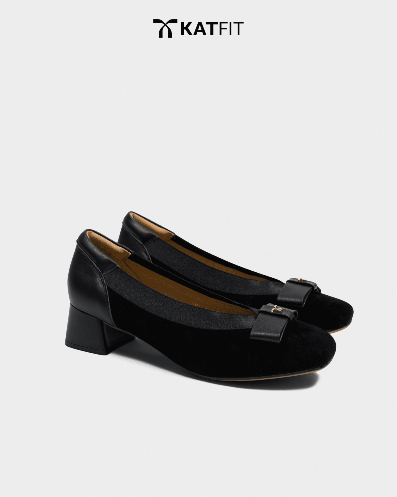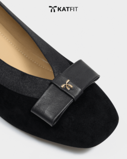 Nơ da đen phía trước, logo kim loại vàng nhỏ
