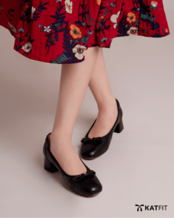 Giày búp bê màu đen Maya da thật
