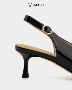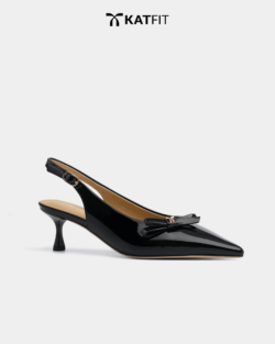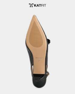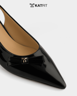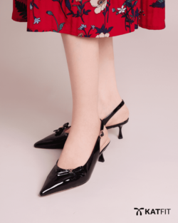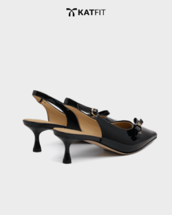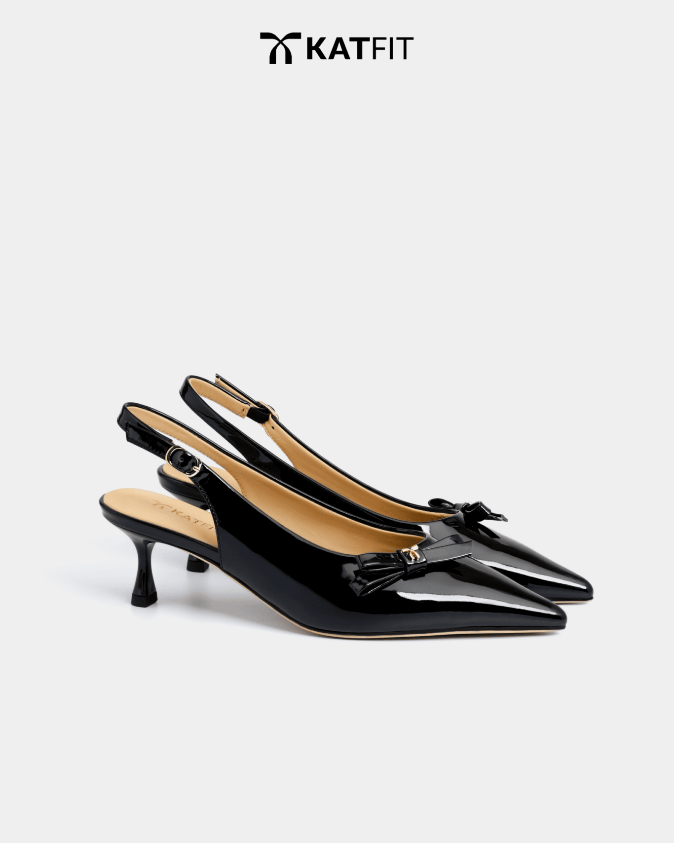 Quai slingback, khóa điều chỉnh, nơ patent kèm charm kim loại KAT