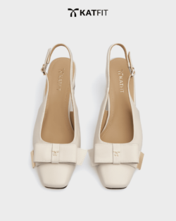 Giày Slingback hở gót màu be Iris da thật
