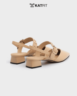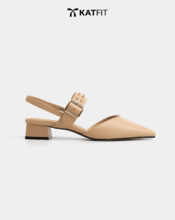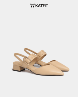 Giày Slingback hở gót màu be Iris da thật
