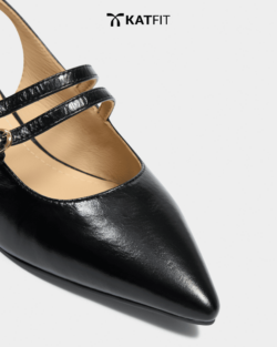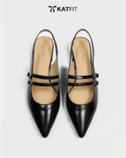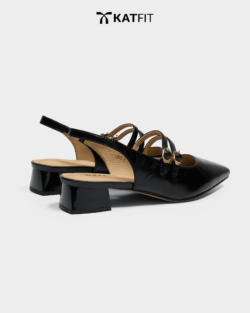Giày Slingback hở gót màu đen Iris da thật