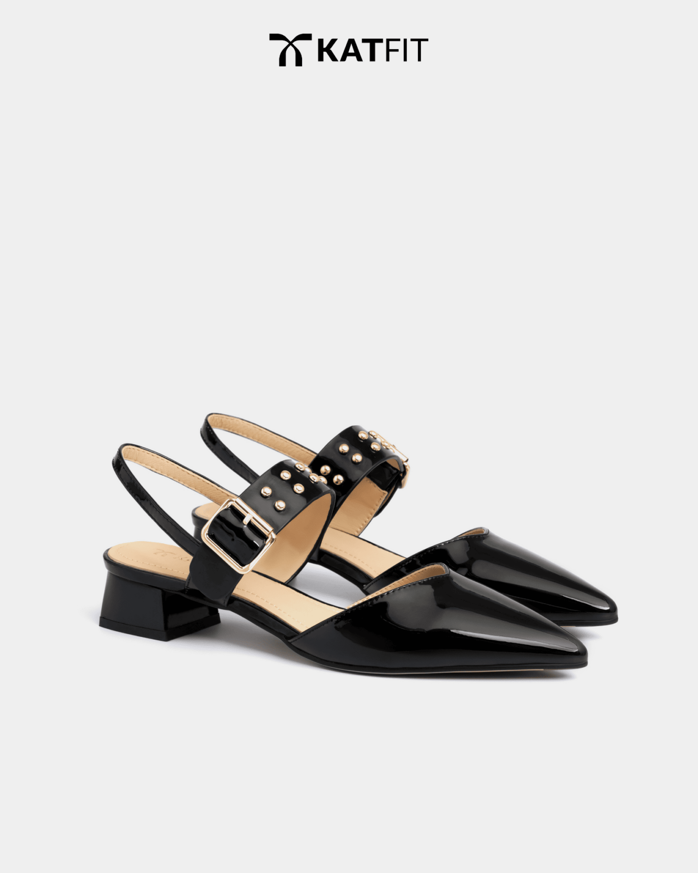 Quai to bản slingback, khóa cài, đính đinh ánh kim
